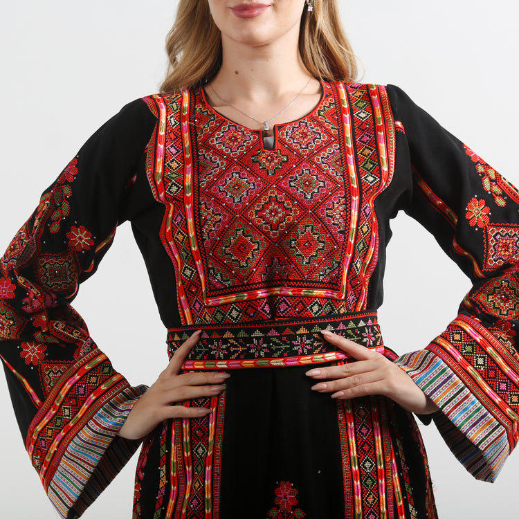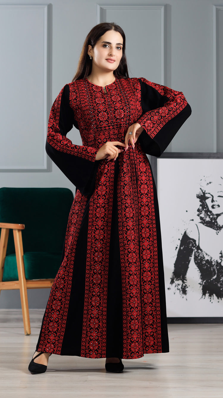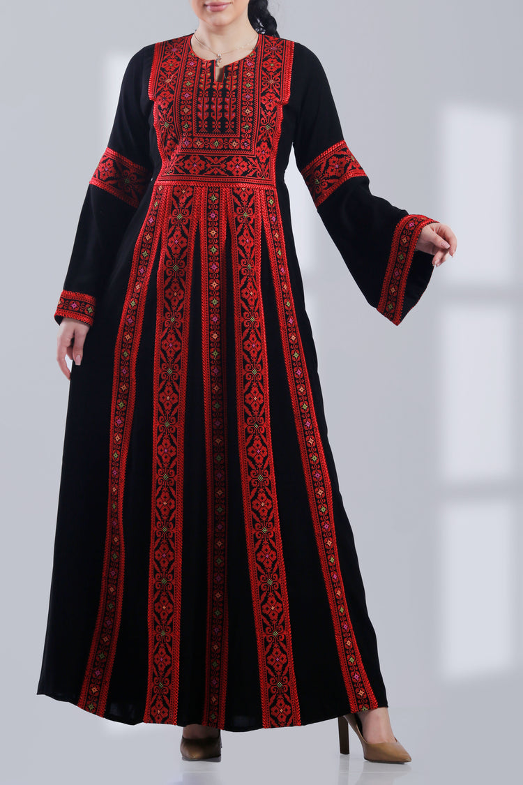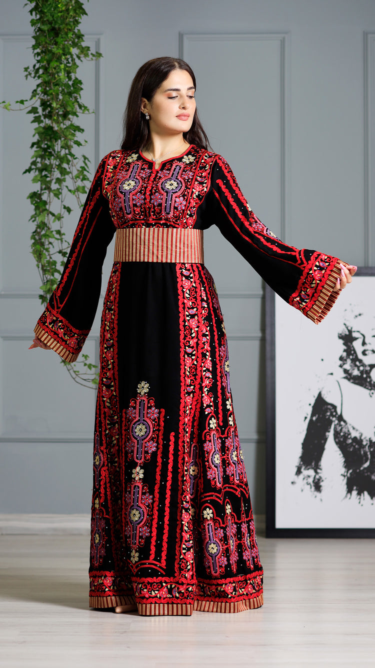 Black And Red Embroidery Thoub ثوب تطريز اسود واحمر