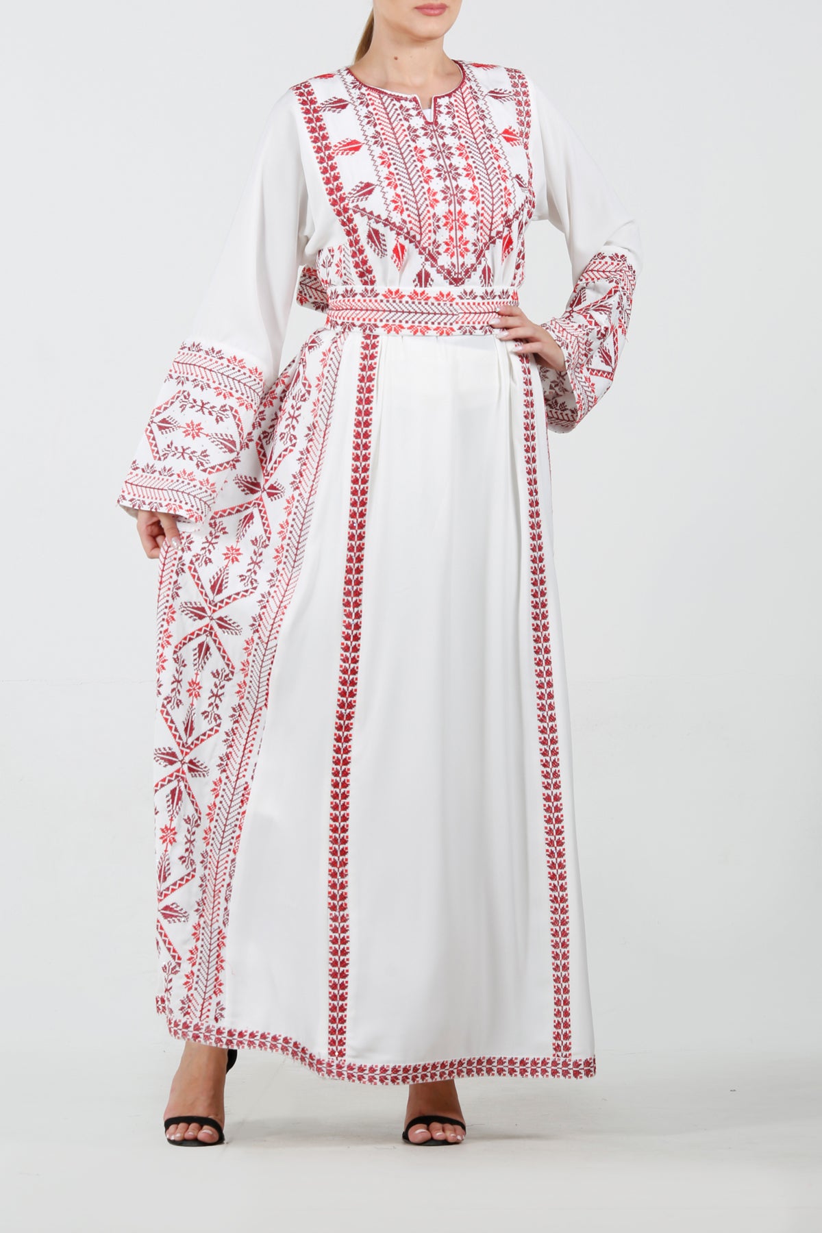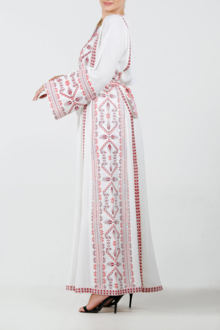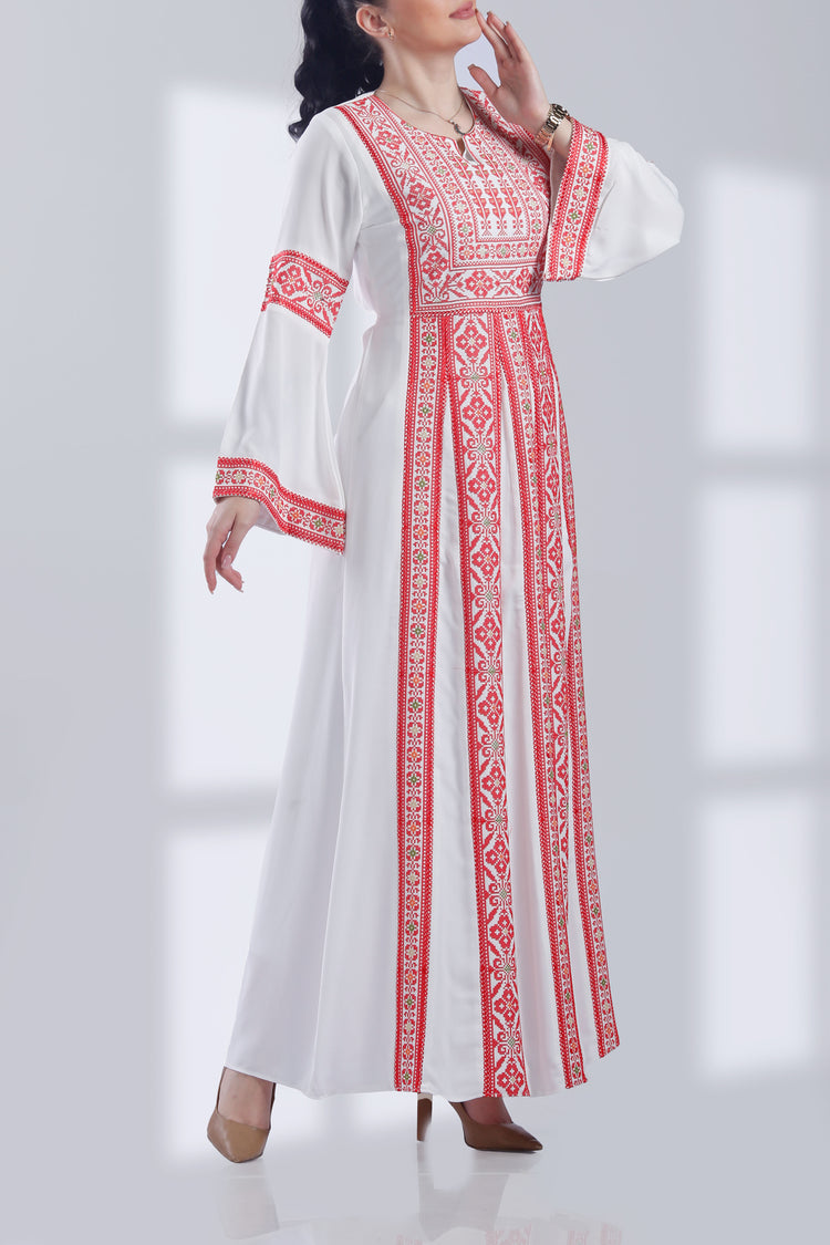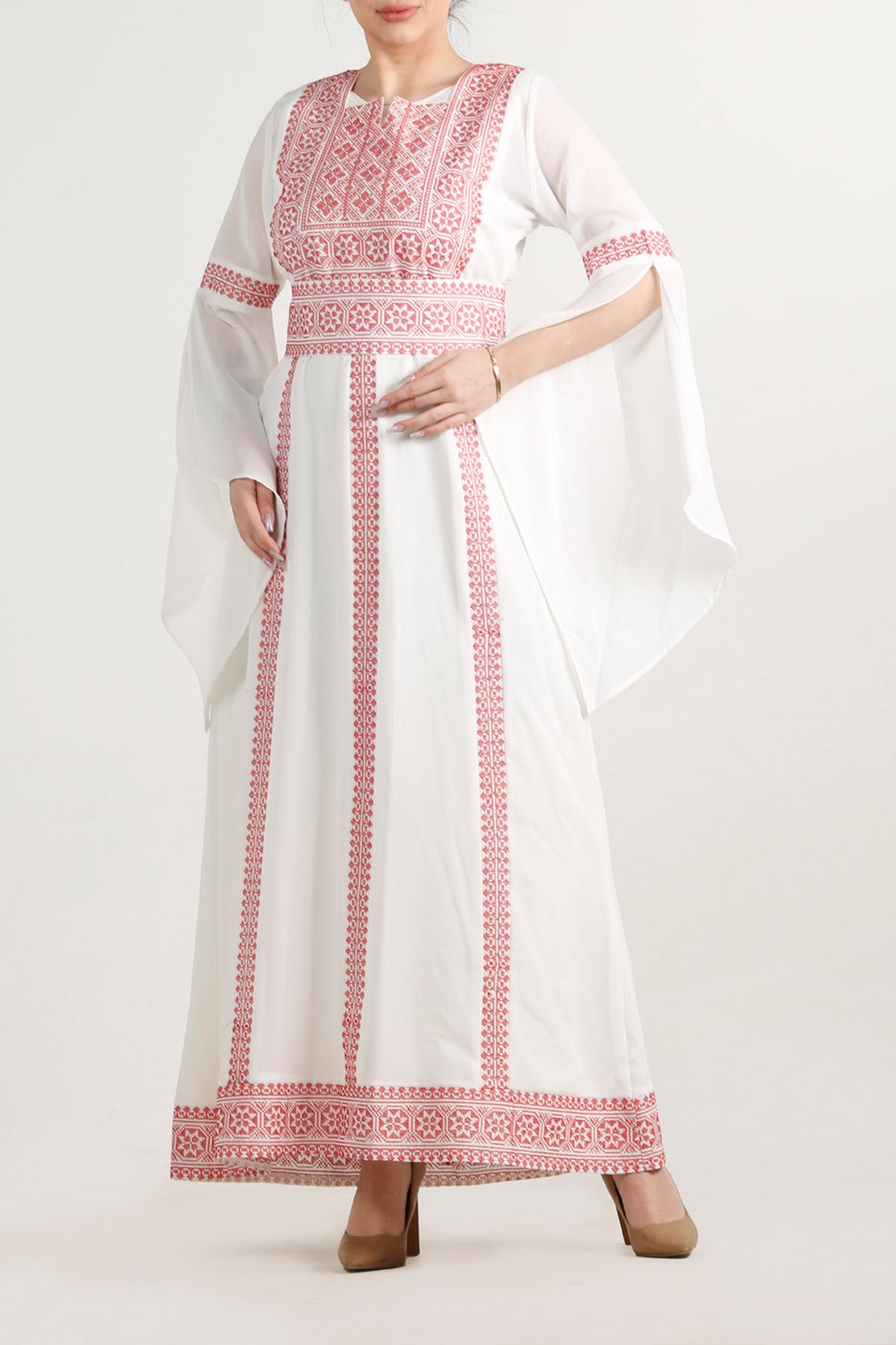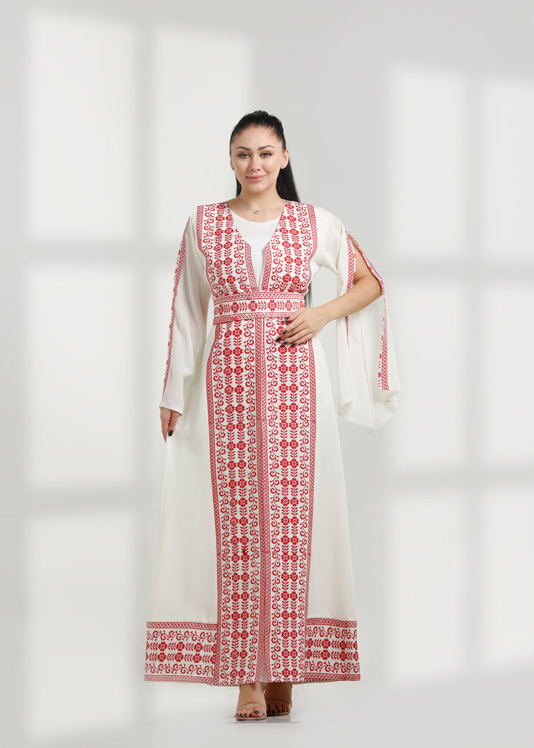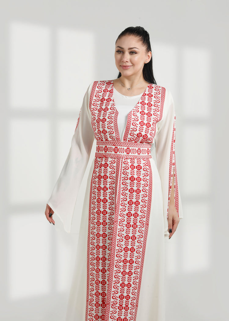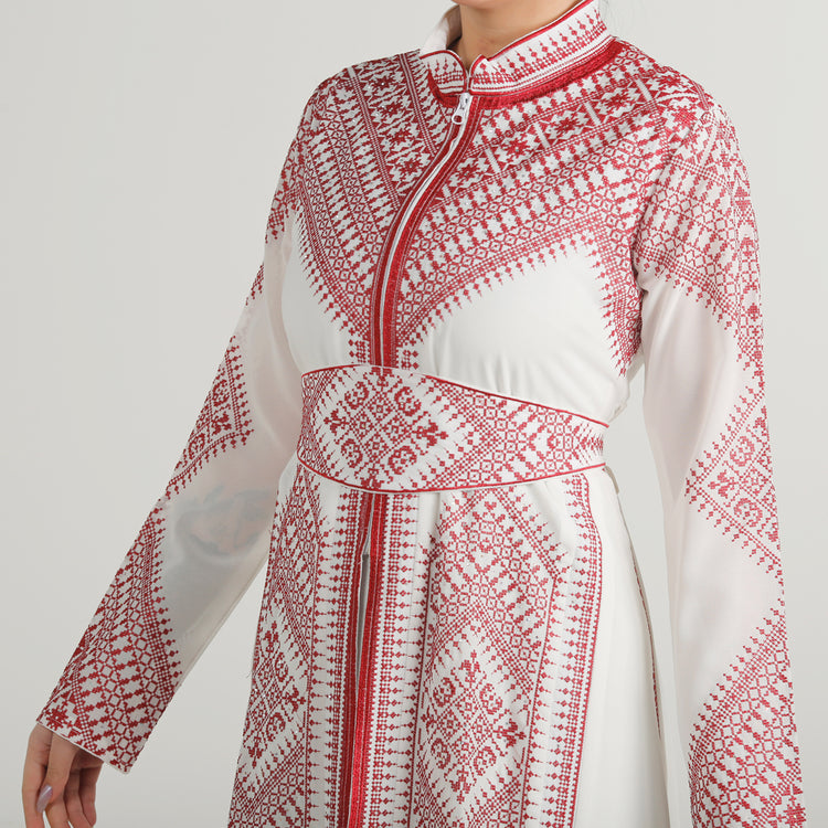 White And Red Embroidery Thoub ثوب تطريز أبيض وأحمر