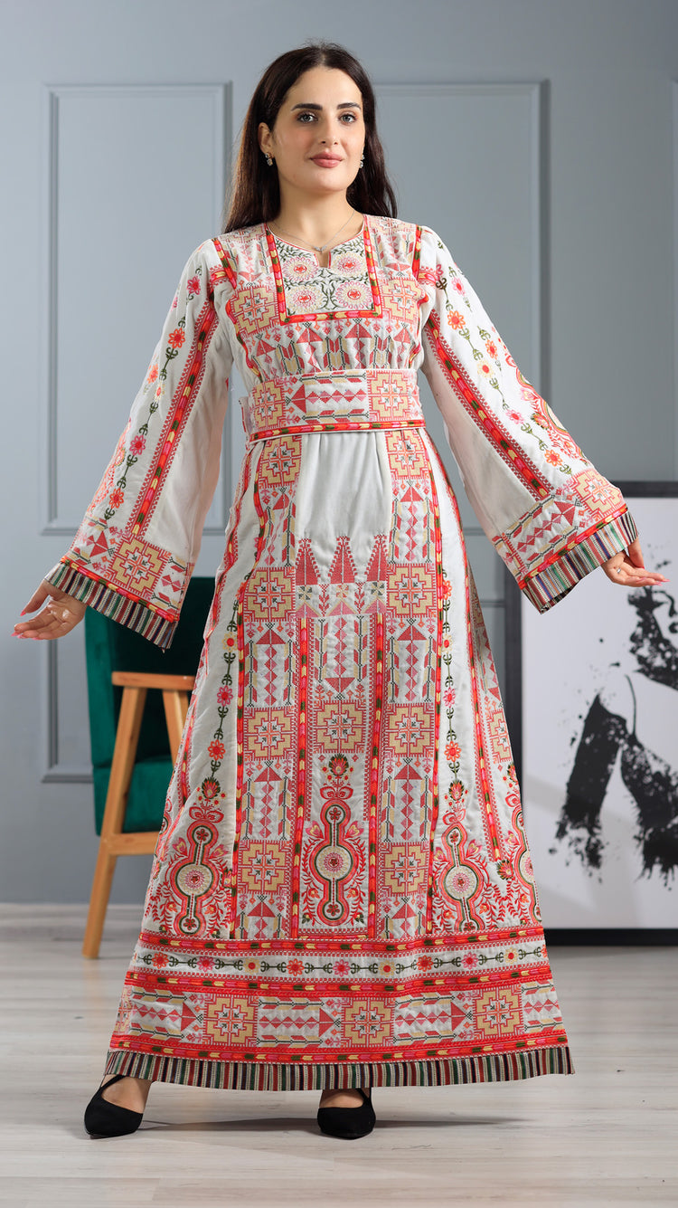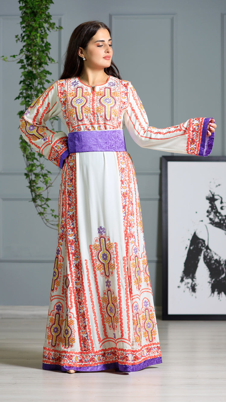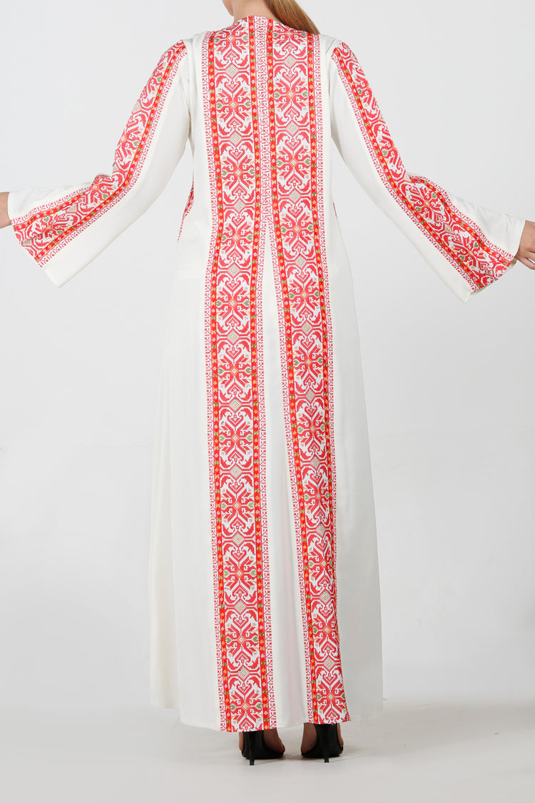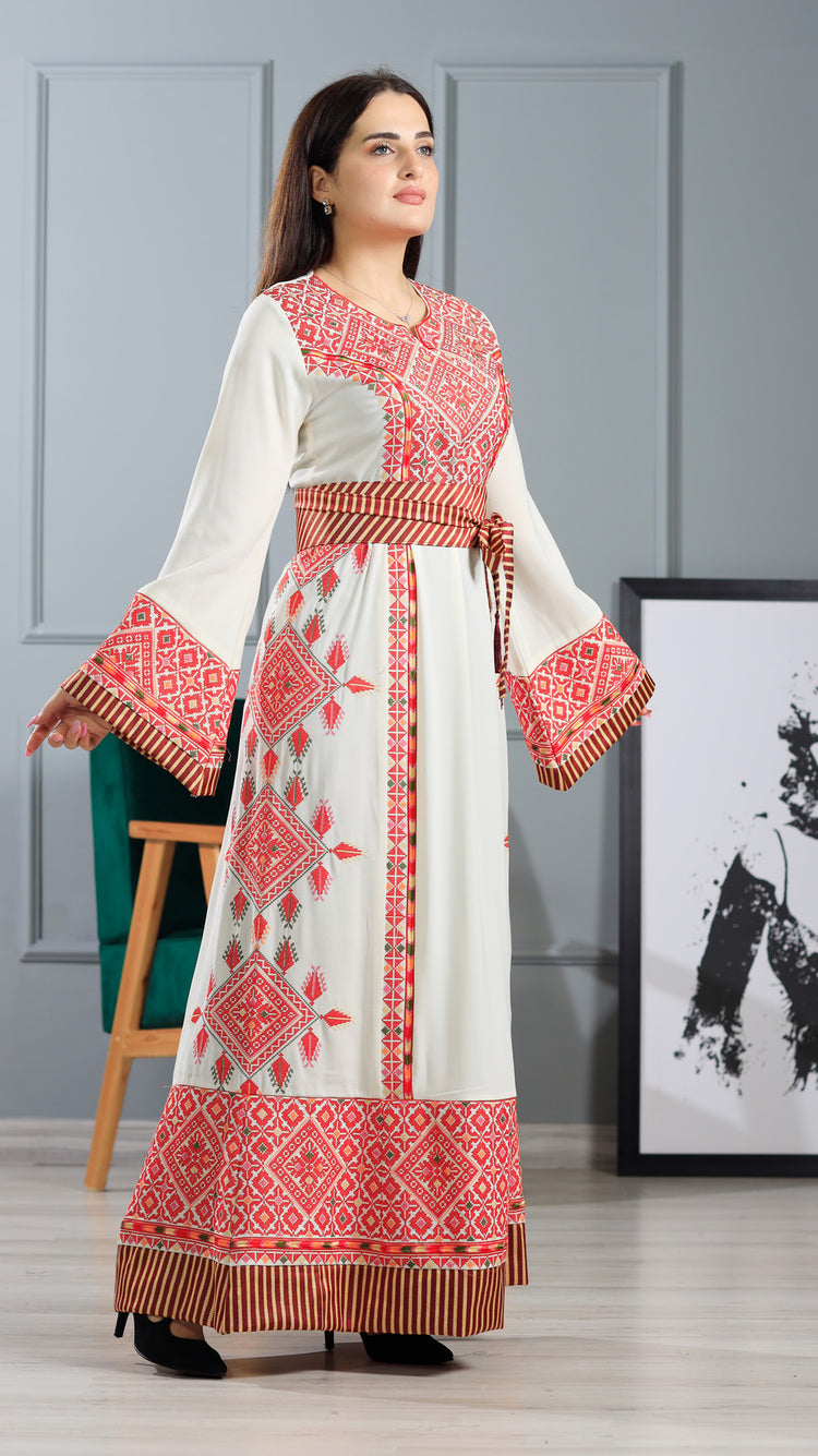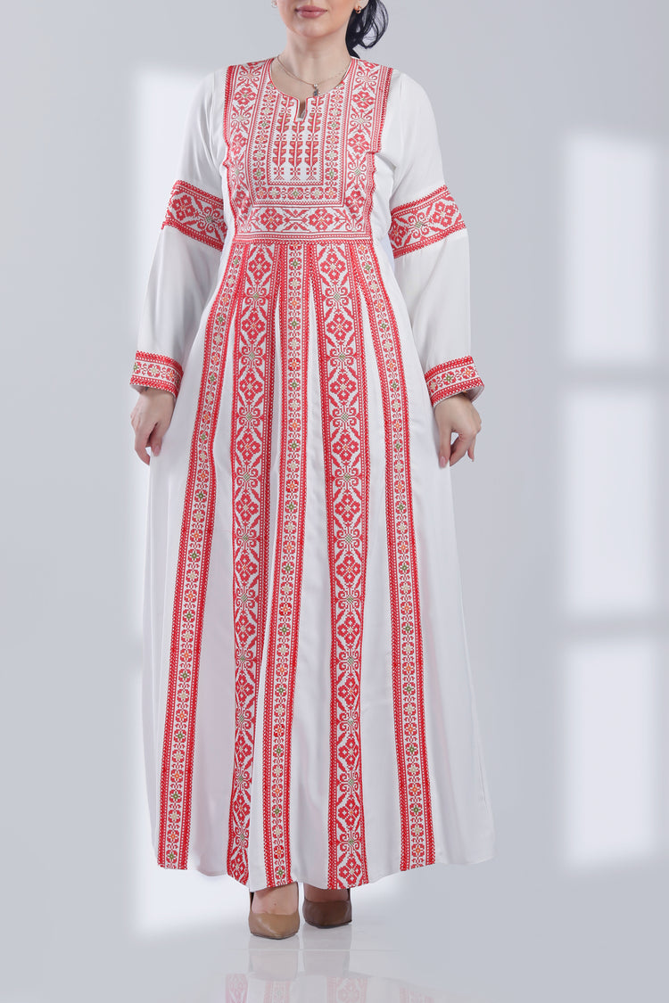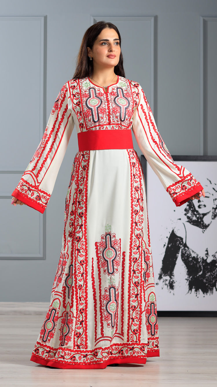 White And Red Embroidery Thoub ثوب تطريز أبيض وأحمر